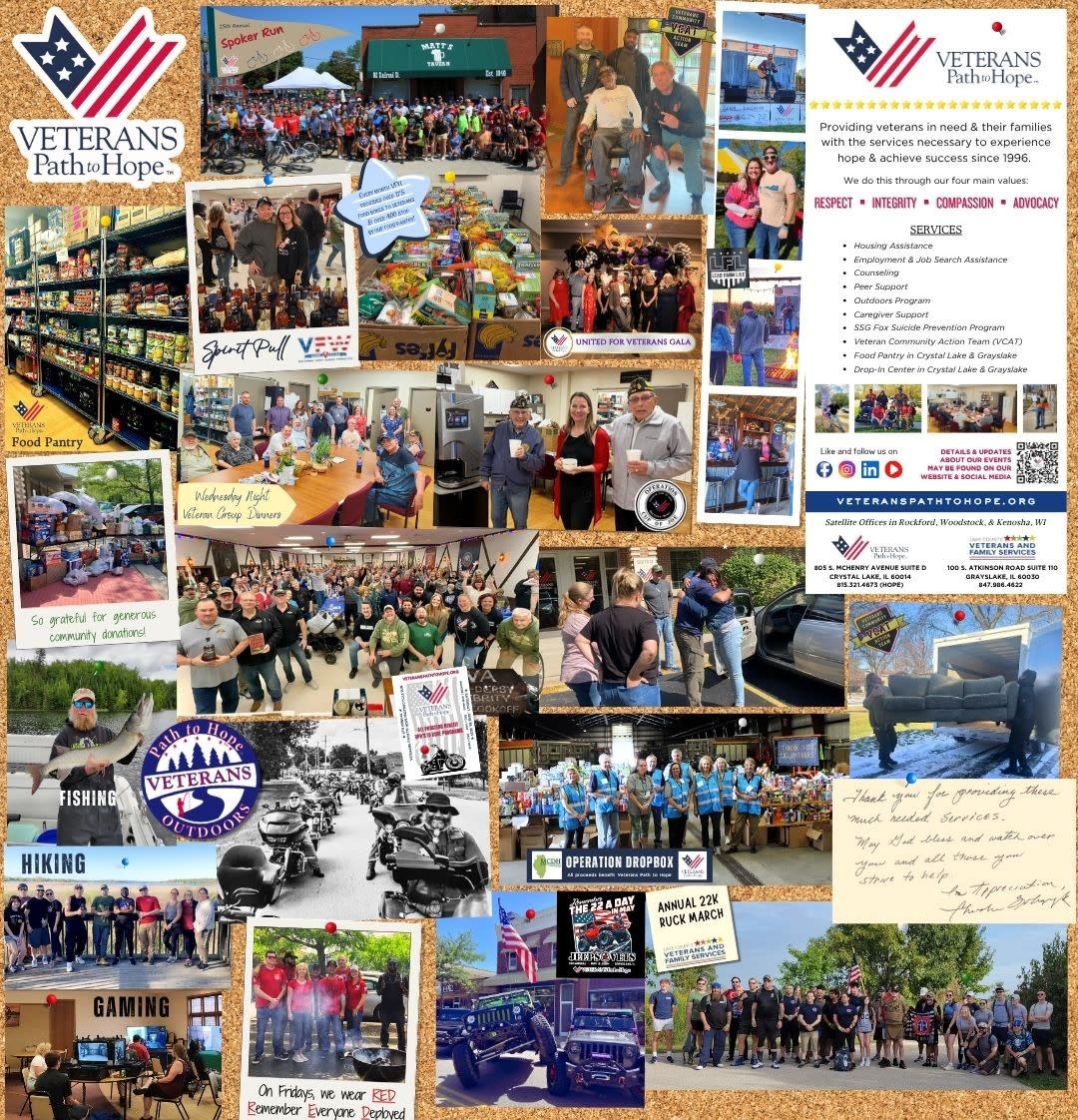 Since 1996, Veterans Path to Hope has supported active and retired military veterans (regardless of their discharge status) & their families in northeastern Illinois & southeastern Wisconsin through programs to assist with housing, employment, peer & clinical counseling services, weekly dinners, & much more.